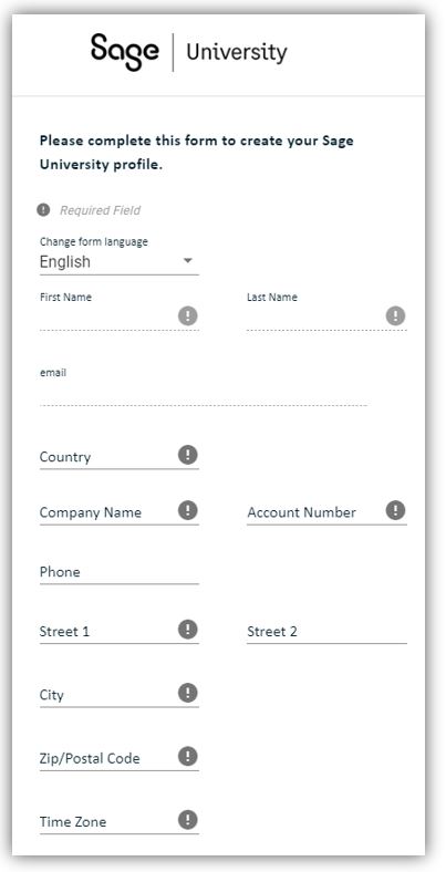 vous pouvez en créer un en cliquant sur “Créer un compte” sur la page de connexion. Une fois connecté à votre compte Sage, veuillez compléter le formulaire pour la création de votre profil et démarrez sur Sage U! Créer un profil
